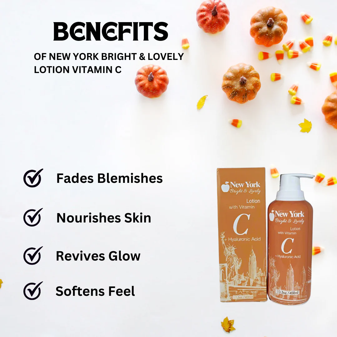 Introducing New York Bright & Lovely Lotion - the perfect addition to your skincare routine! Packed with Vitamin C, this 13.5oz/400ml lotion will leave your skin bright, nourished, and glowing.